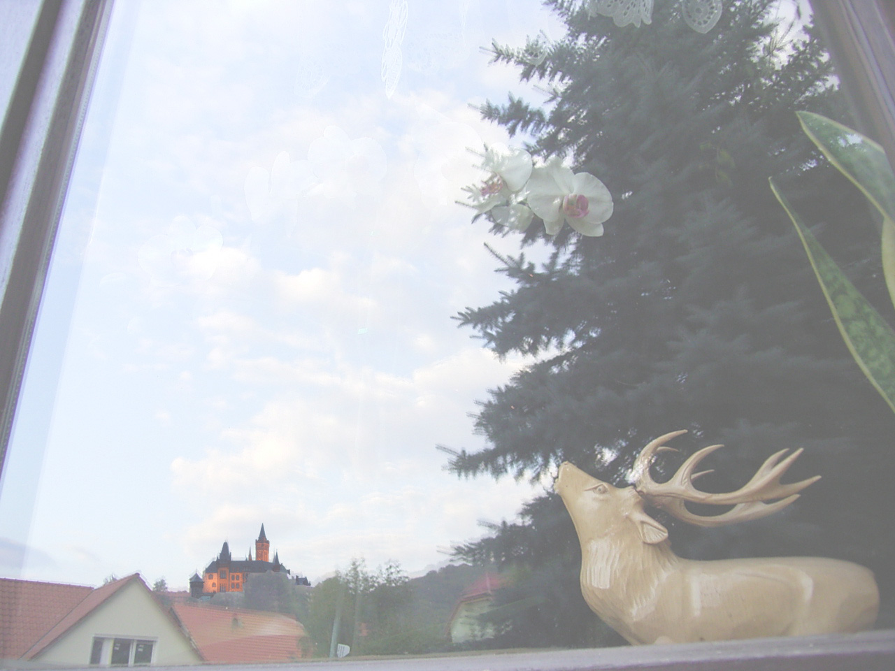 Unser Haus liegt dem Schlossberg gegenüber, in einer sehr ruhigen Wohngegend und ist umgeben von privaten Häusern und Villen, mit herrlichem freien Blick zum Schloss und ins Harzvorland.